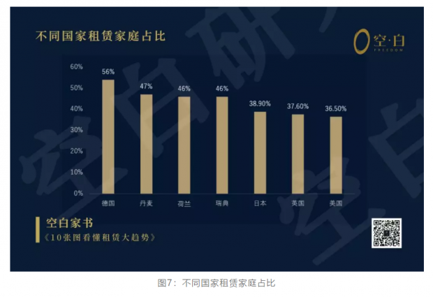 美国、日本、英国的租赁家庭占比普遍高于35%,而德国更是高达53%。