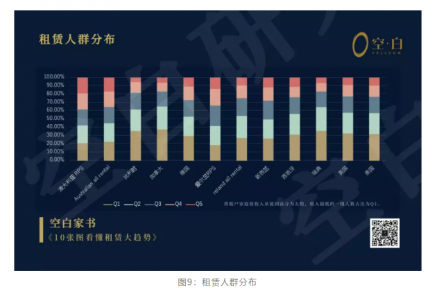 从收入结构上同样如此,不仅仅是对于低收入人群而言,对于广泛的不同收入阶层来讲,租赁都越来越成为一个普遍的选择。